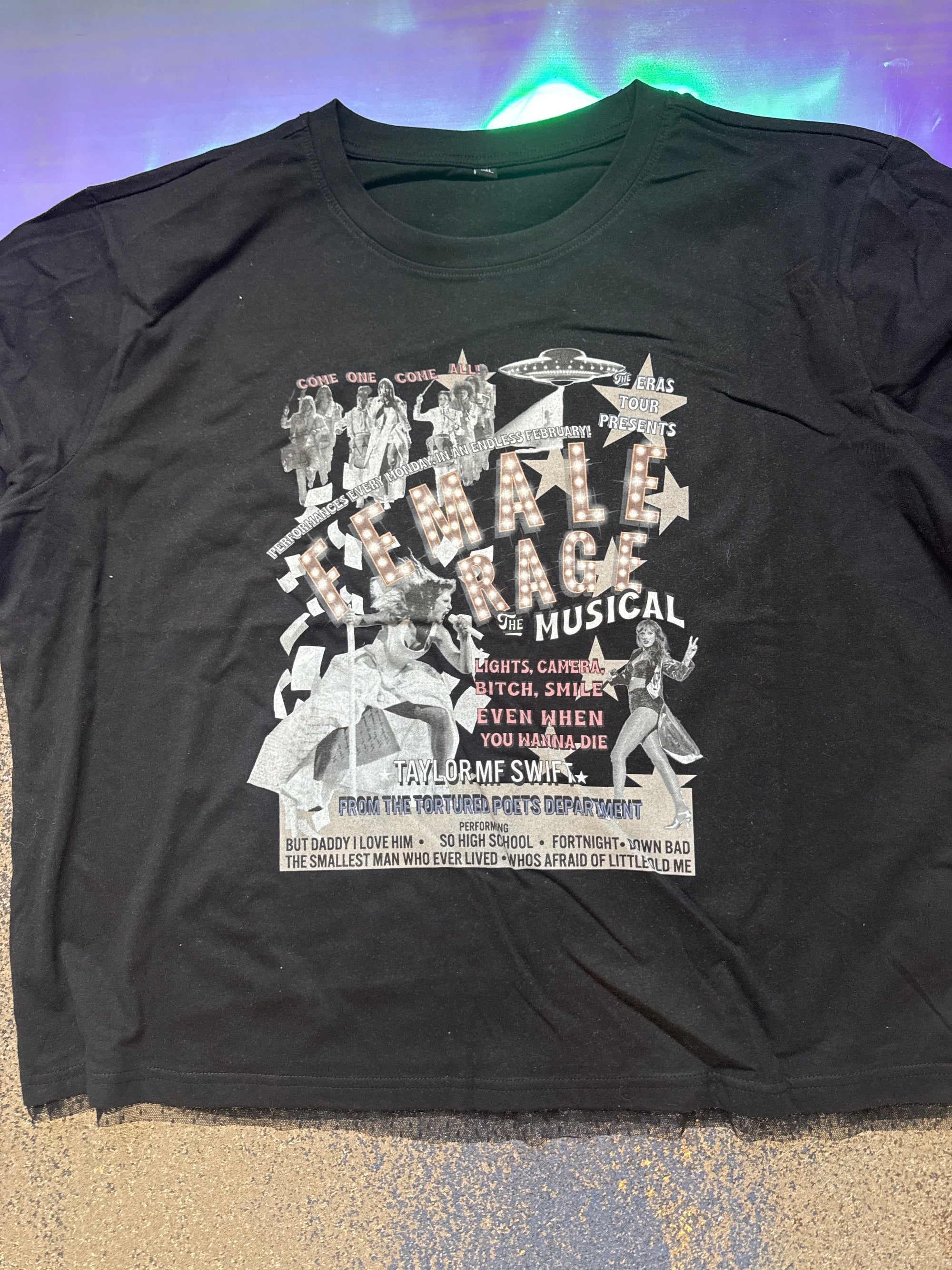 4XL (comes up small) (20/22) female rage slightly cropped lace trim tee
