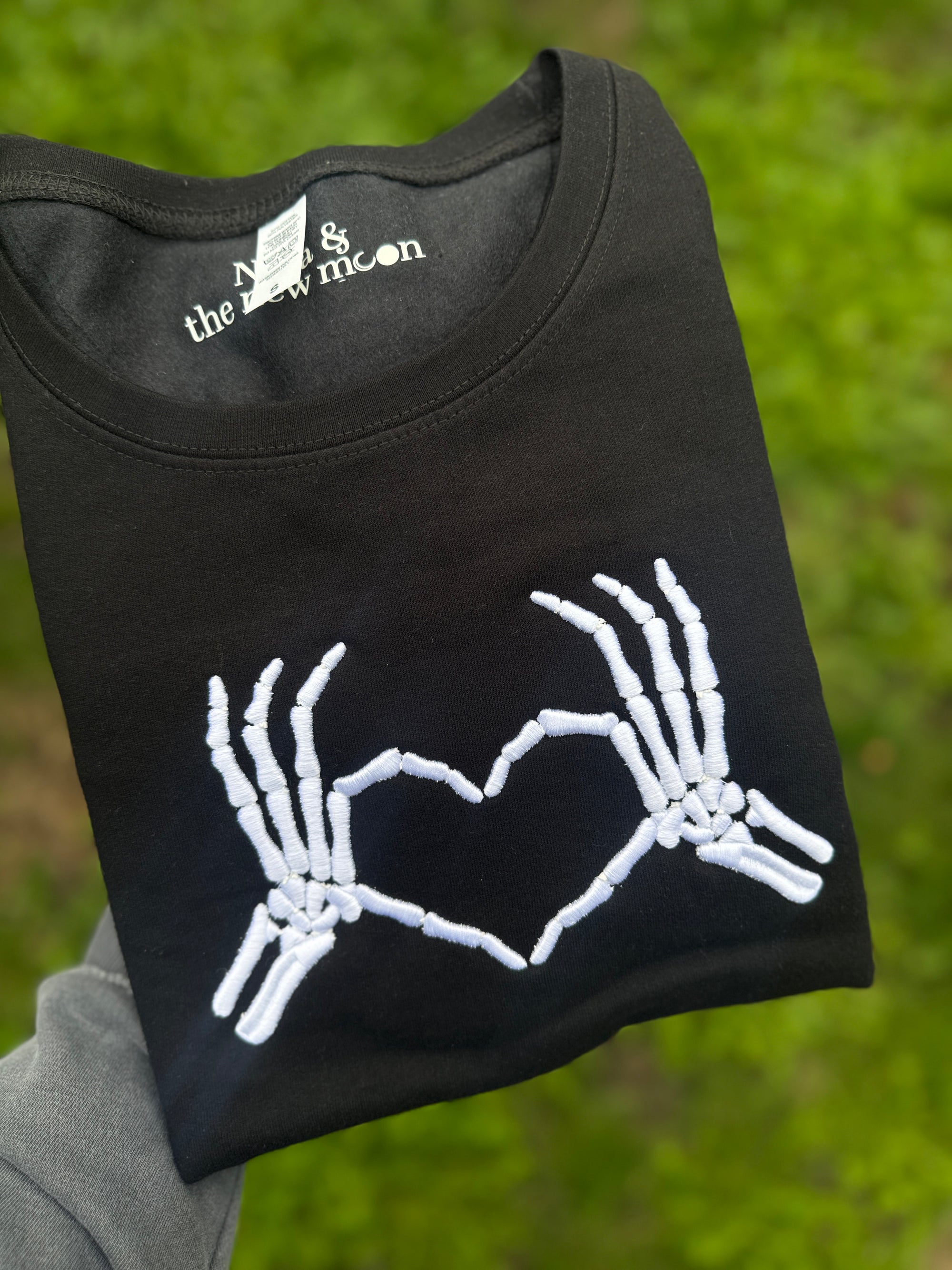 Fearless 3D puff embroidered skeleton hand sweatshirt/ hoodie
