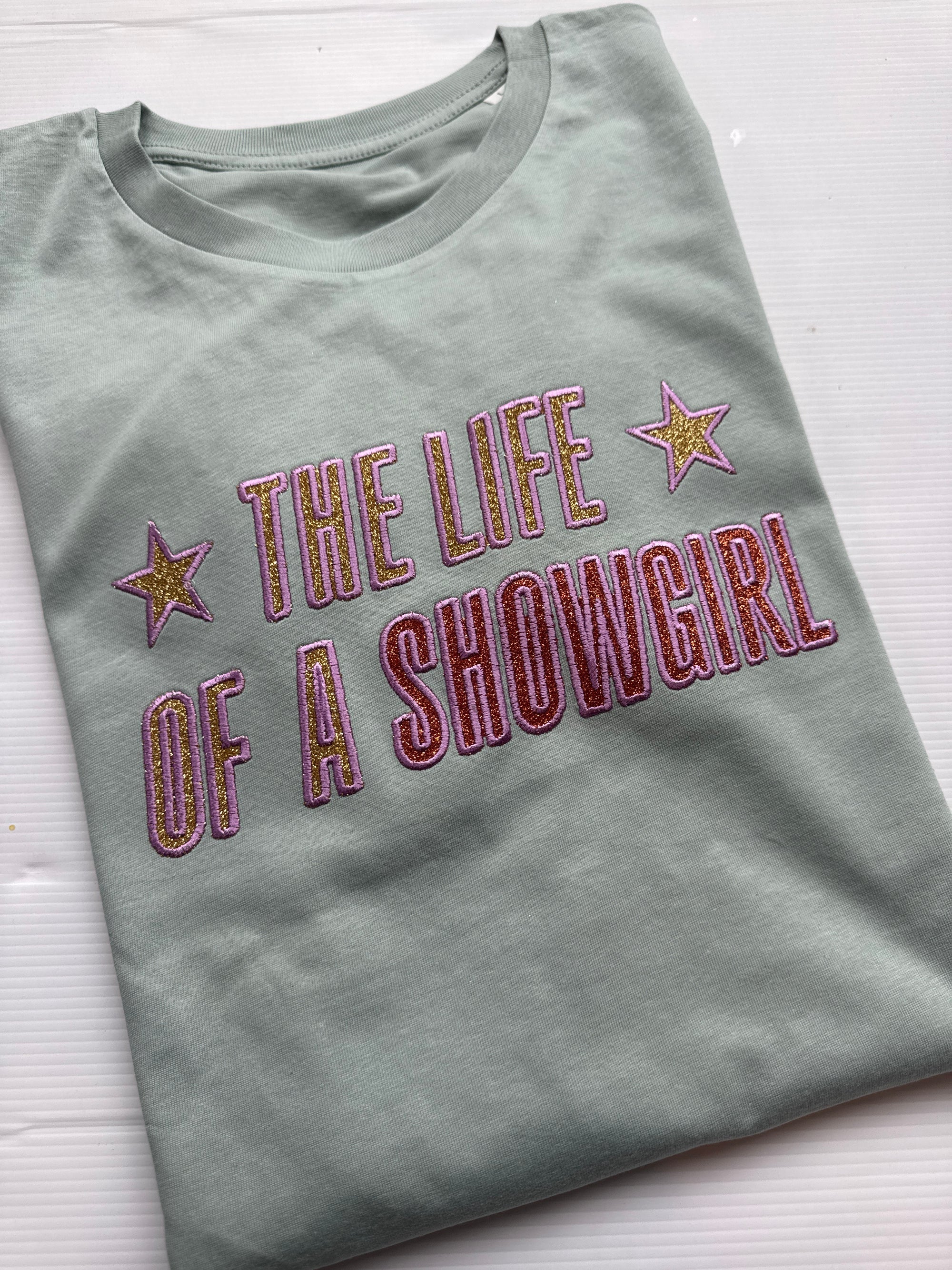 Large 14/16 Life of glittery star embroidered aloe organic tshirt