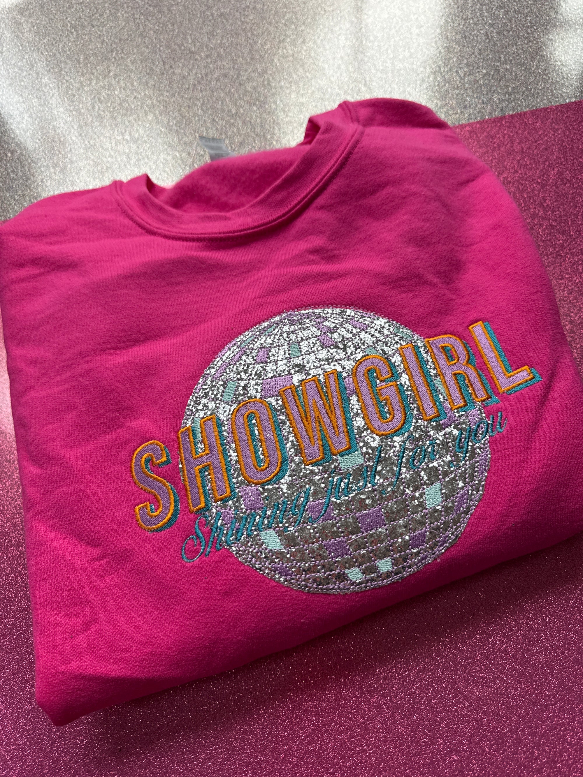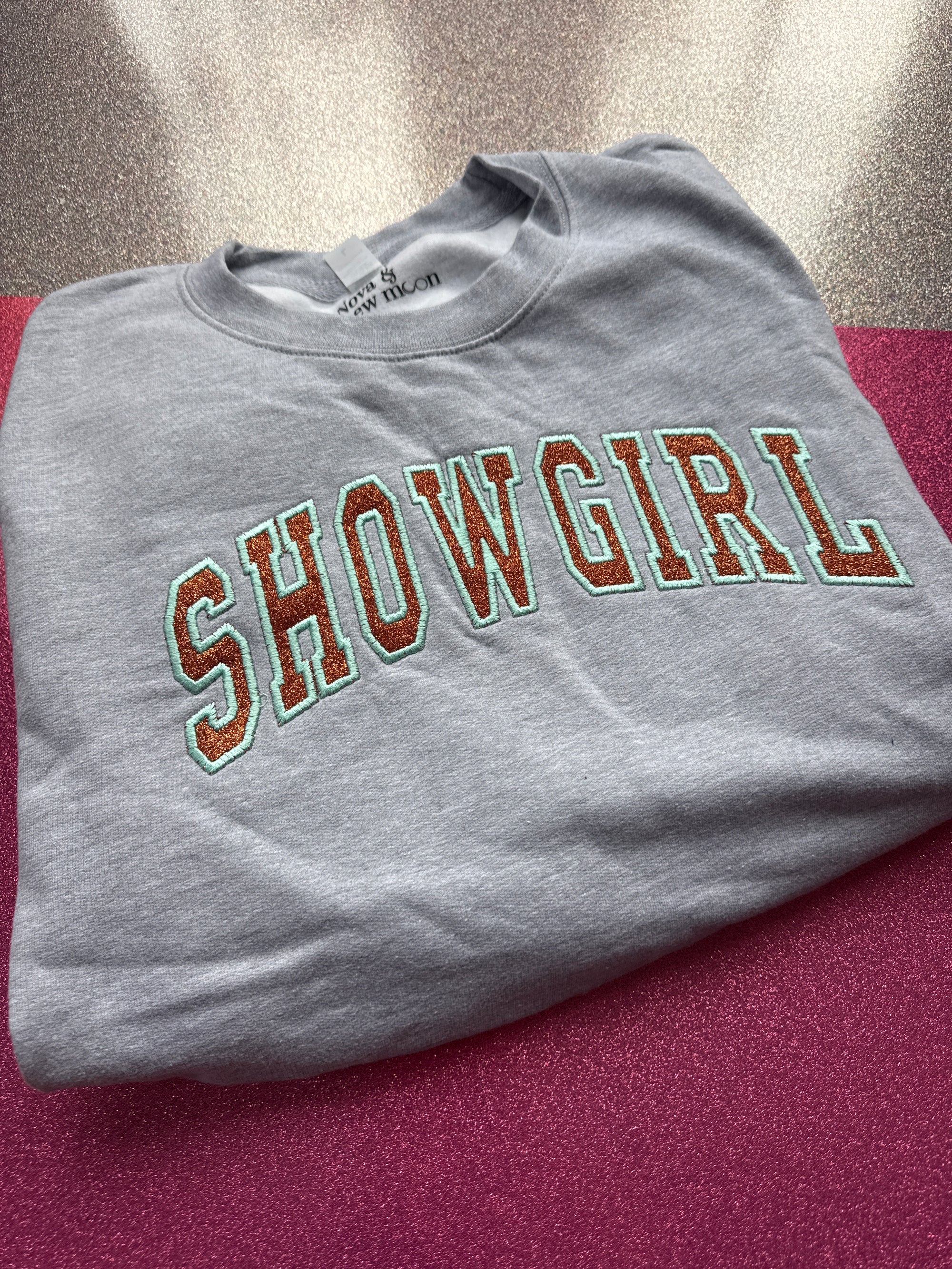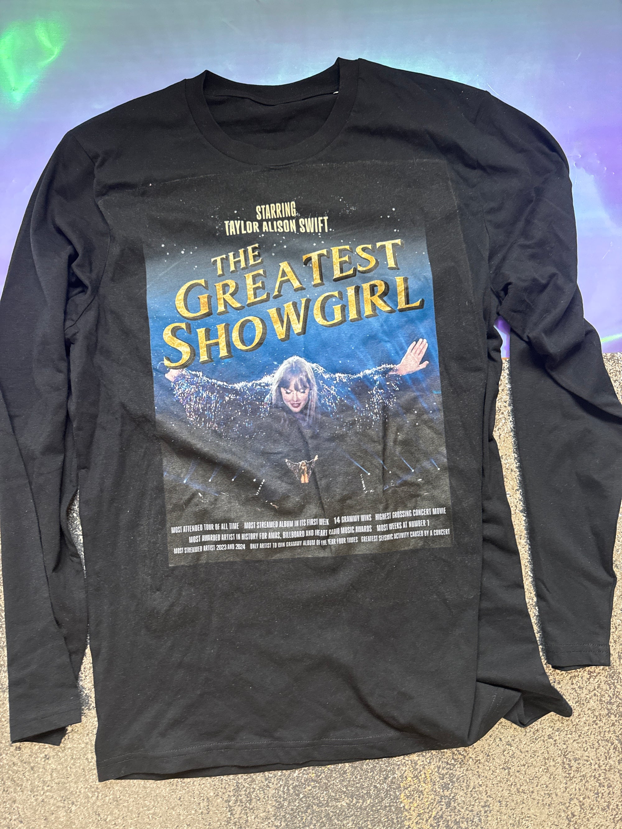 Large long sleeved showgirl tshirt (pretreatment mark)