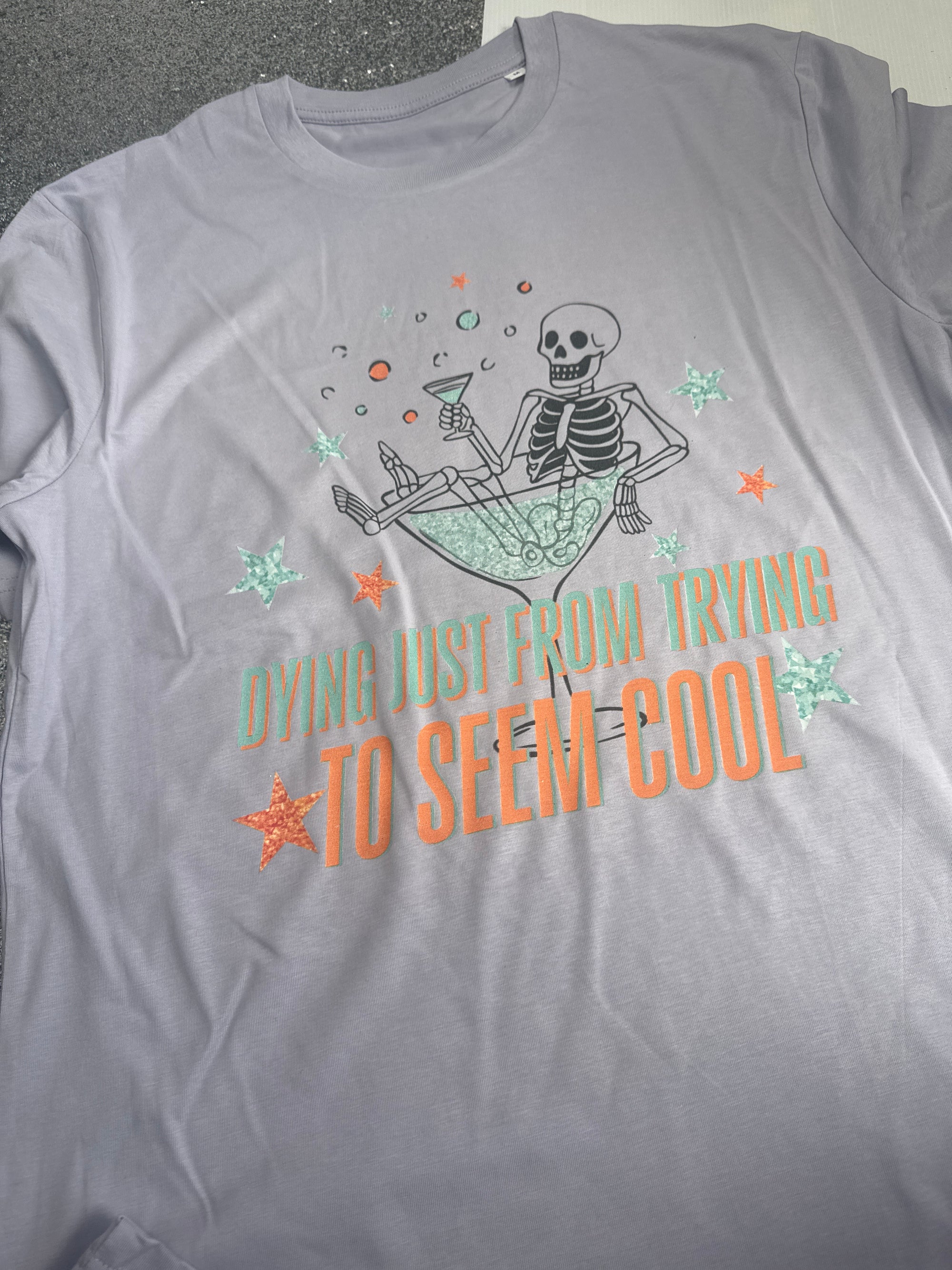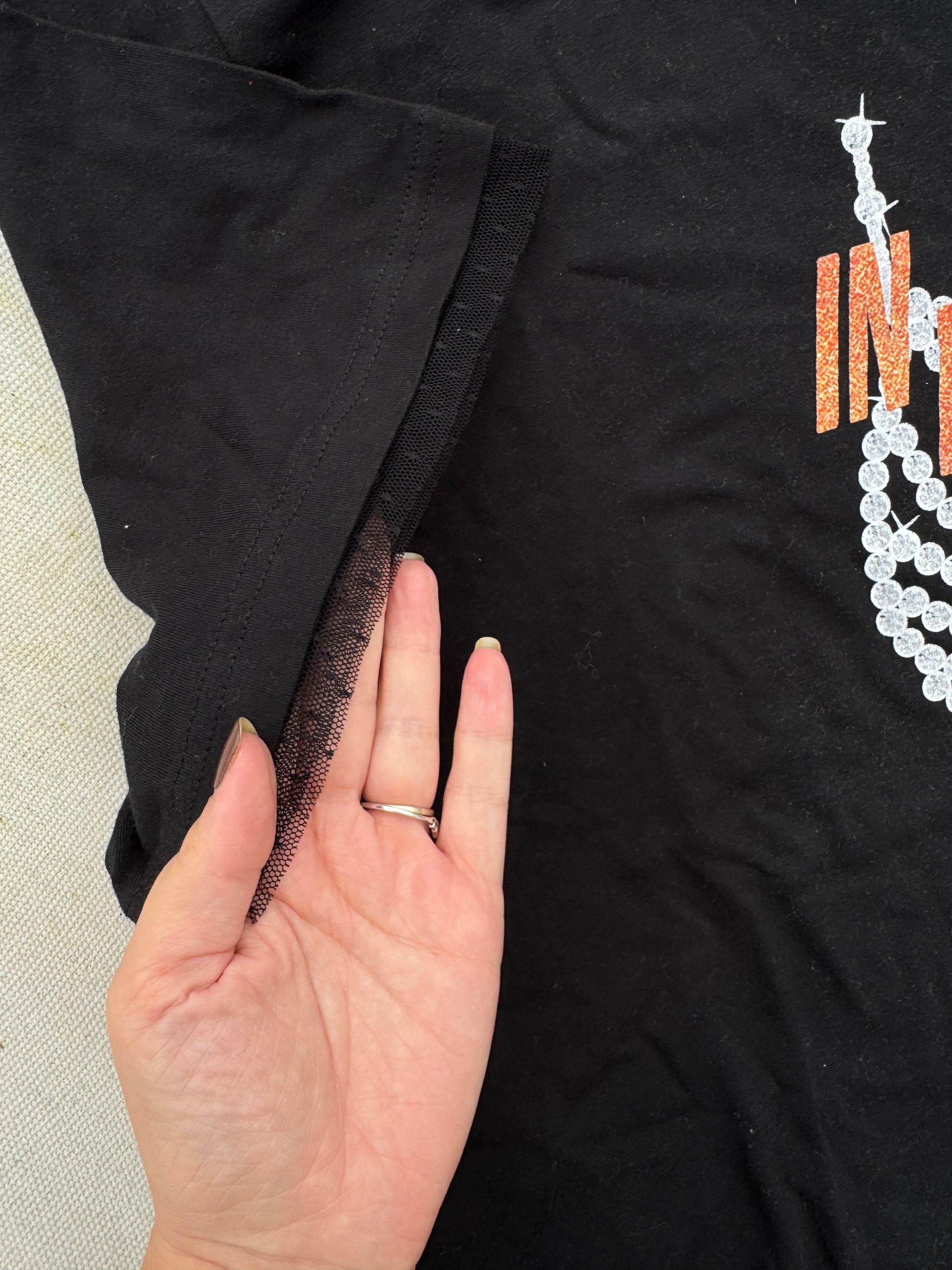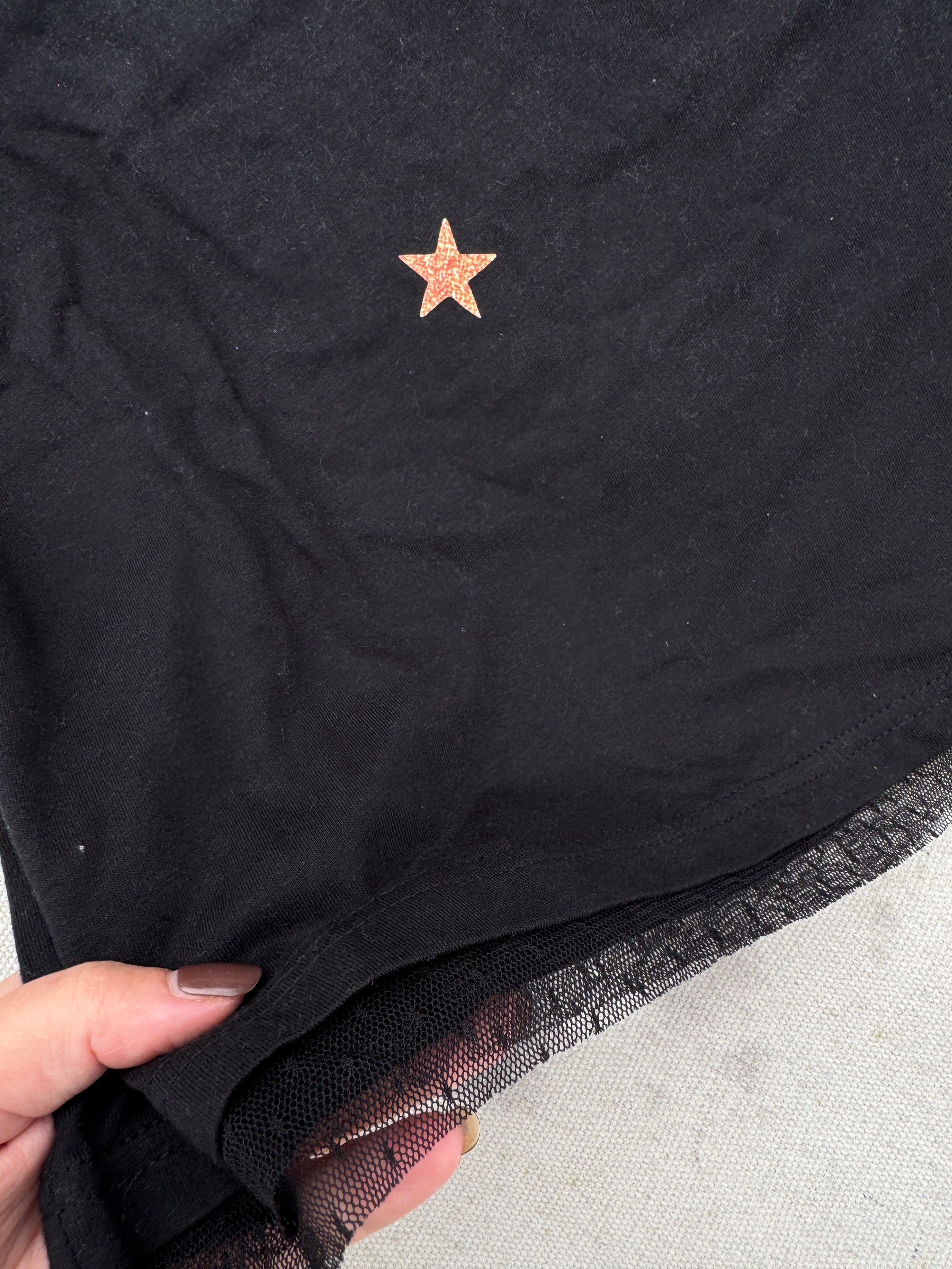 Large 14/16 Life of glittery star embroidered aloe organic tshirt