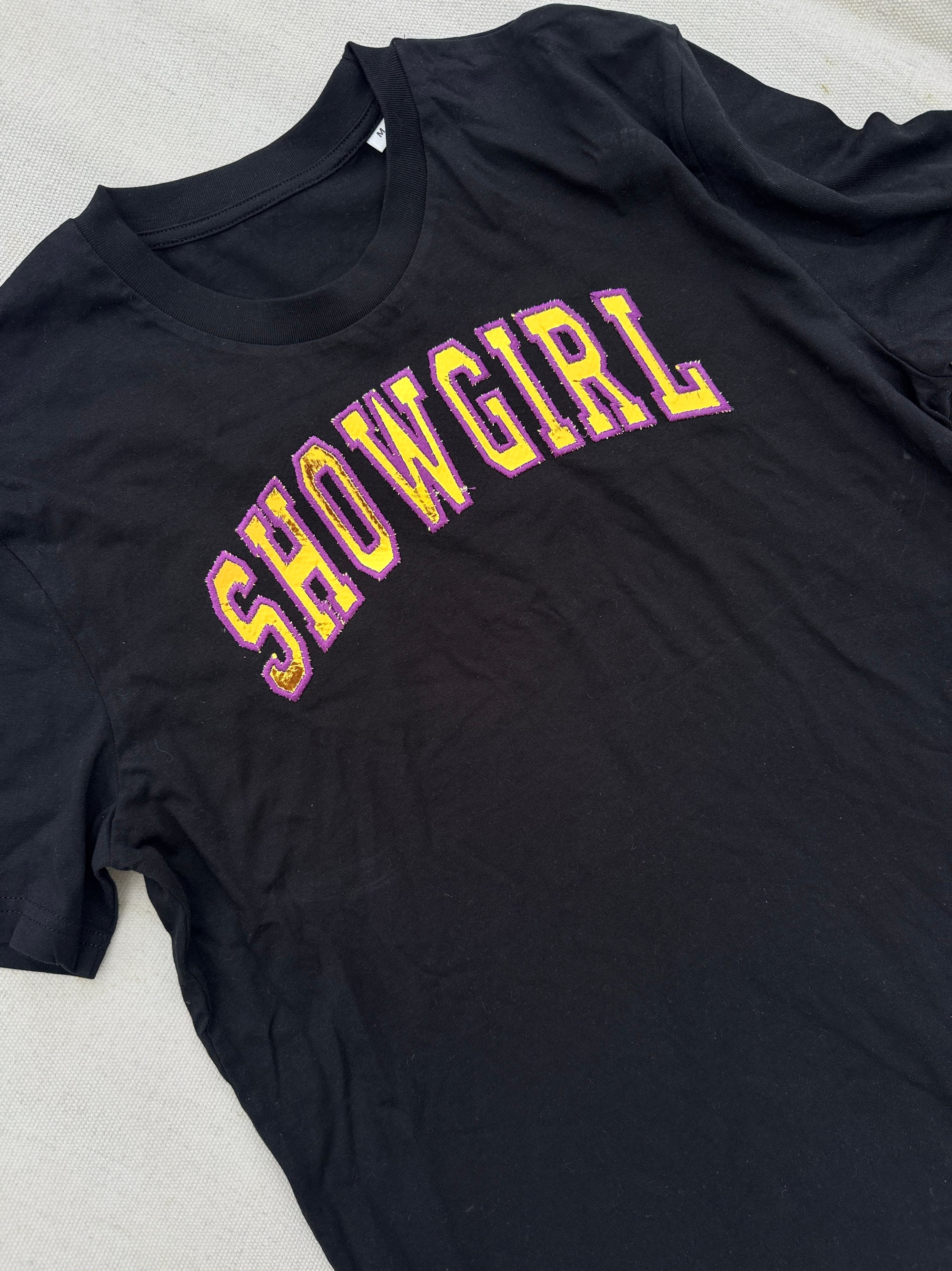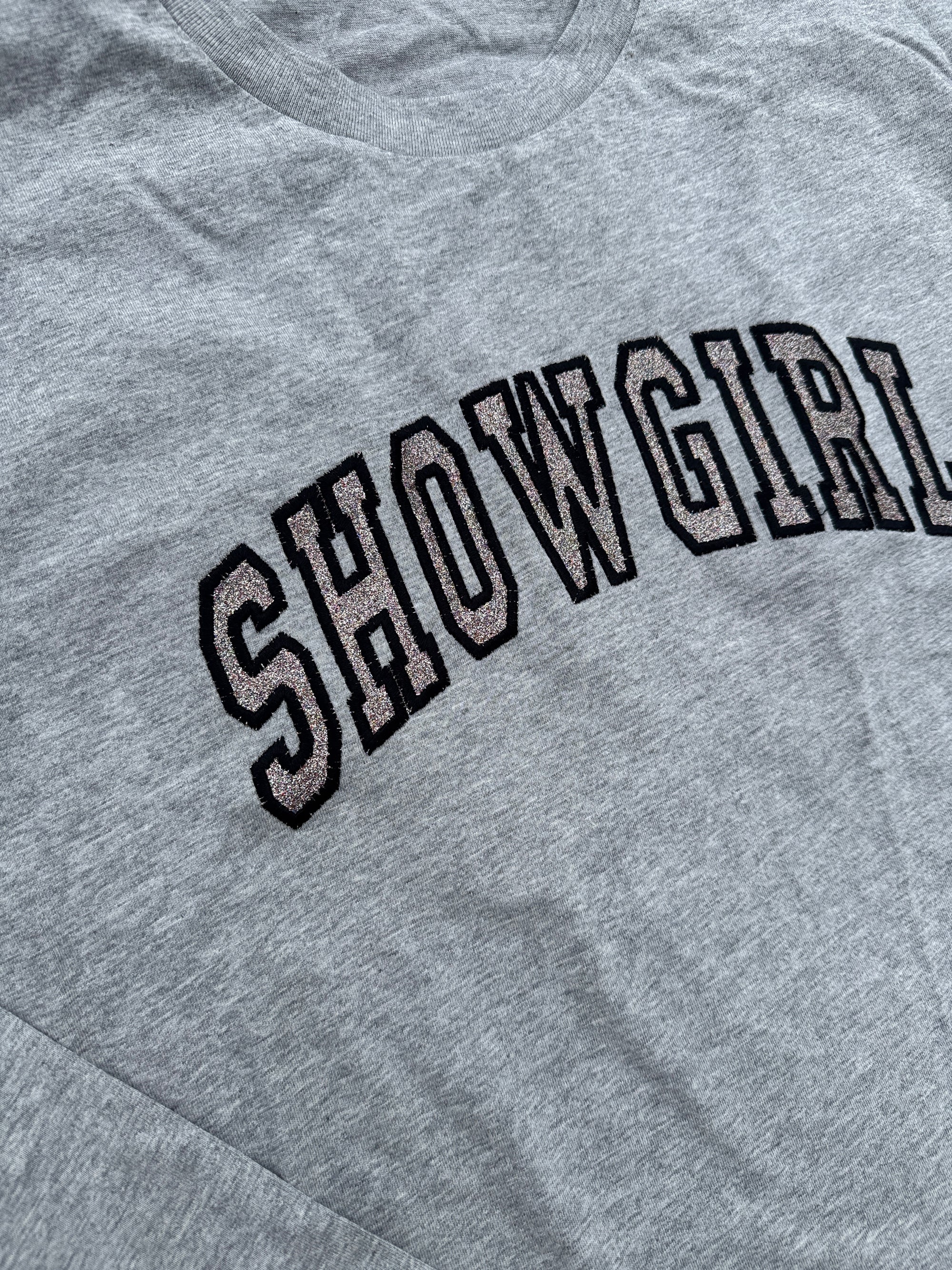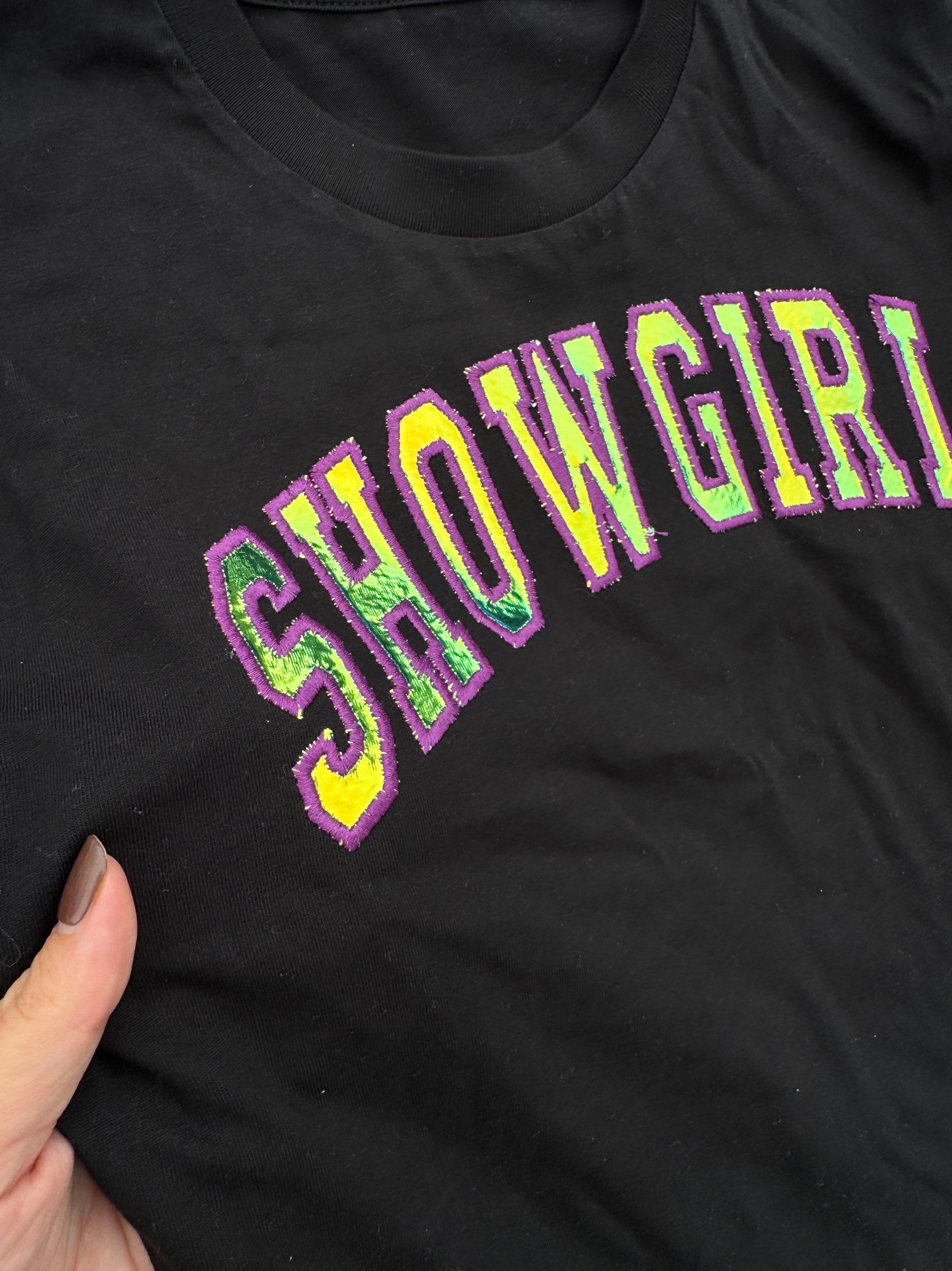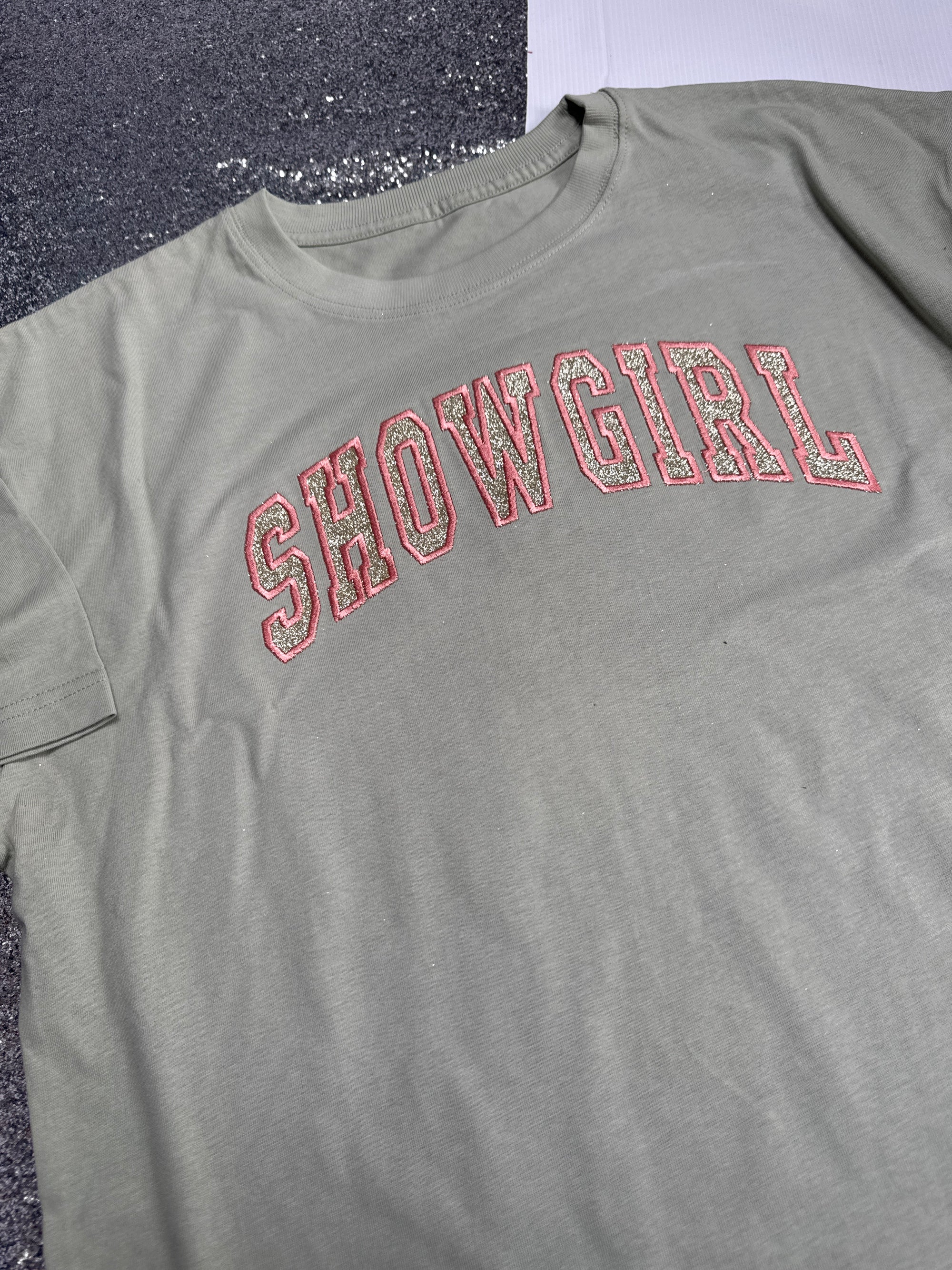 Large showgirl appliqué (the crowd is your king colourway) sage tshirt