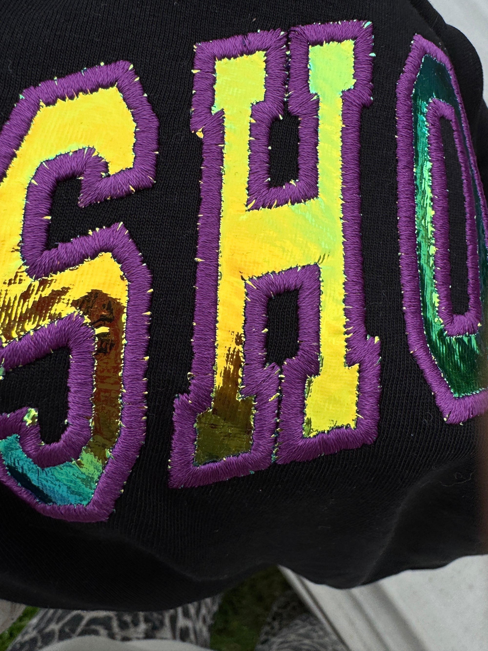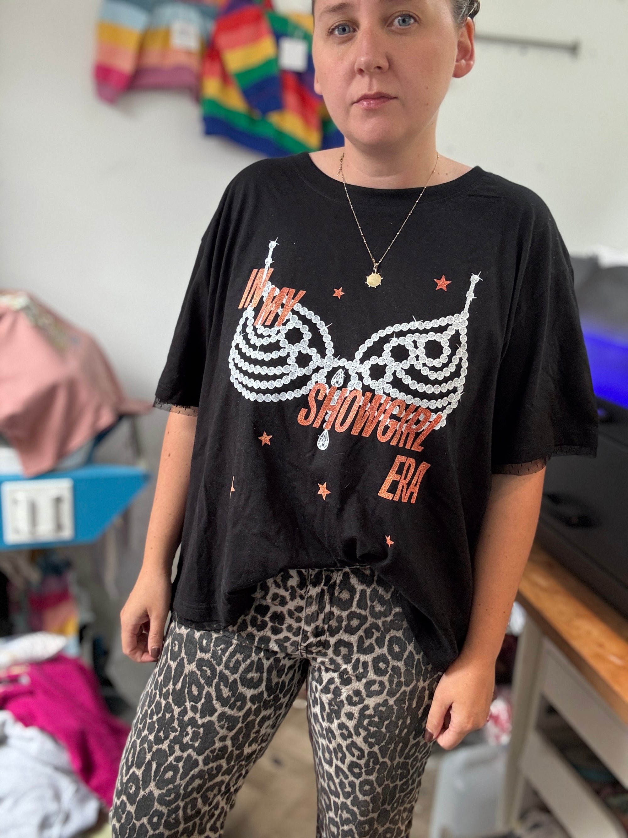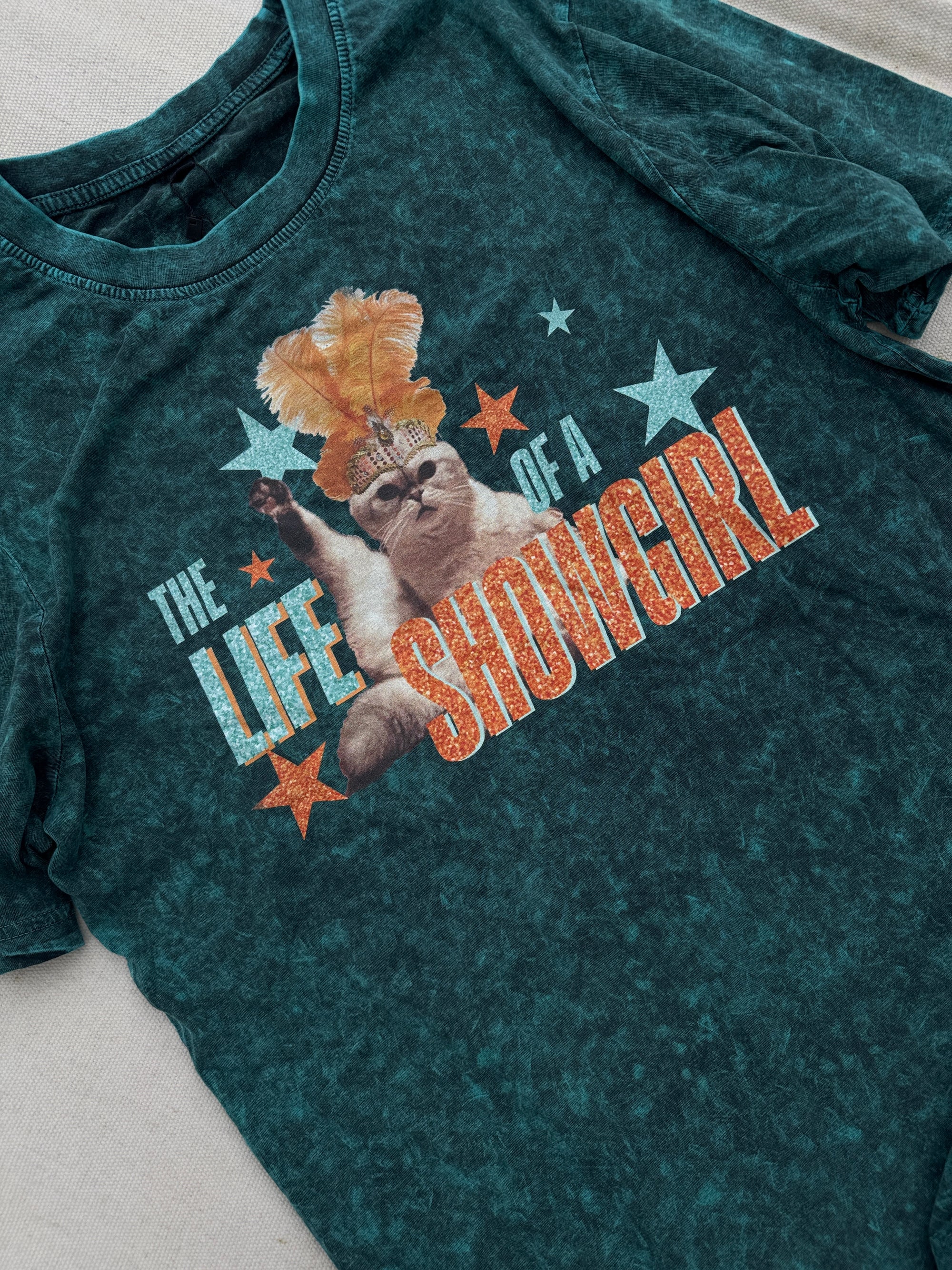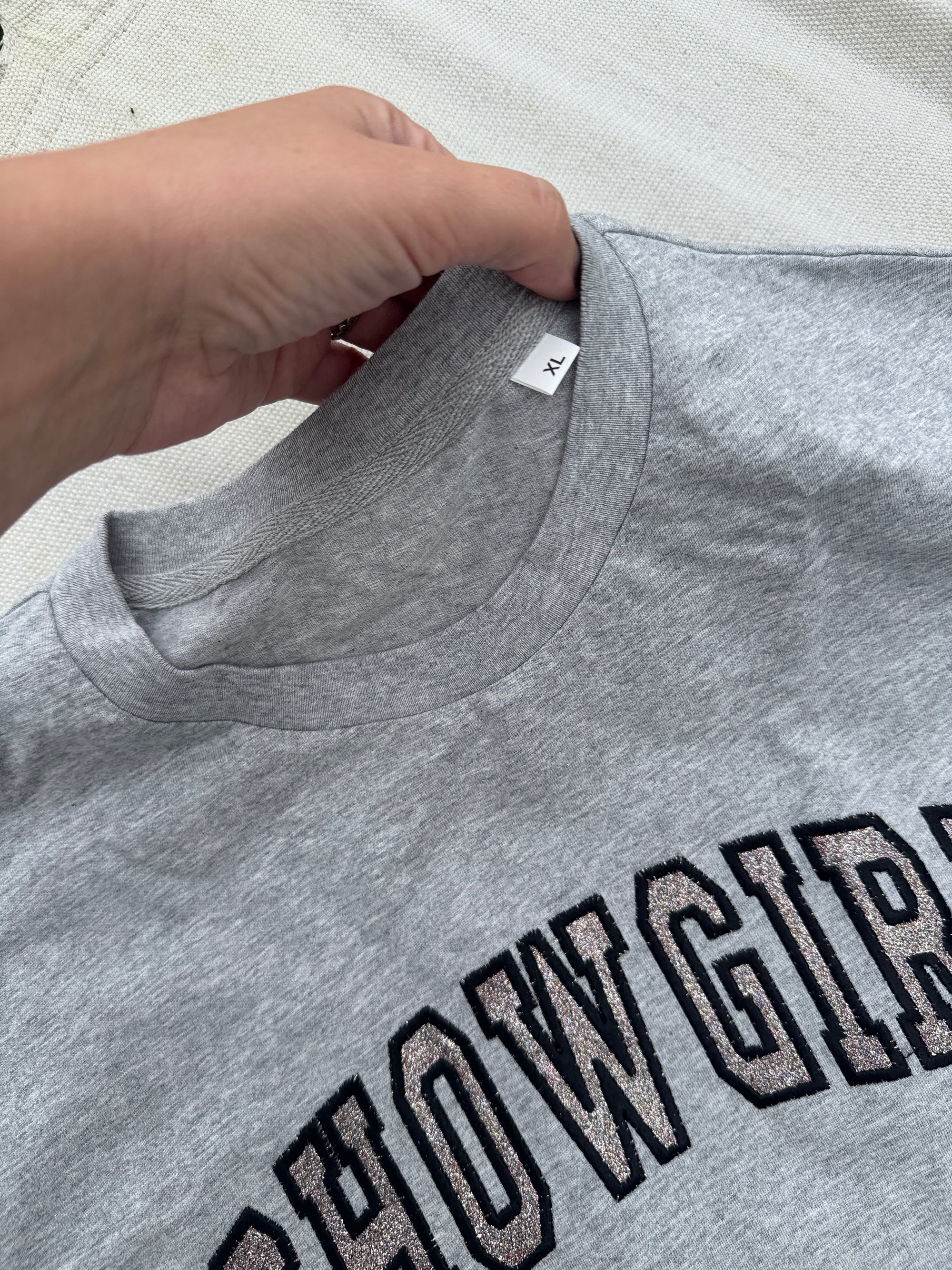 Large showgirl appliqué (the crowd is your king colourway) sage tshirt
