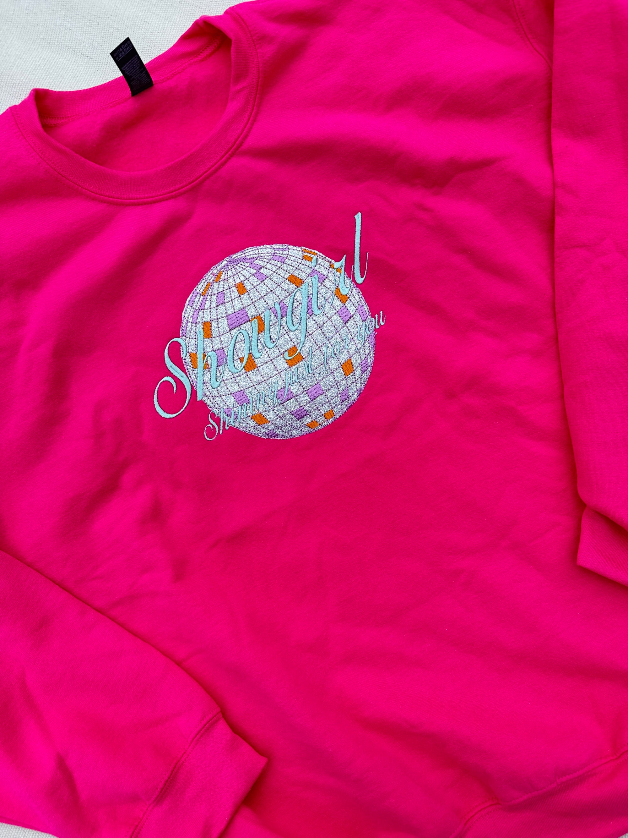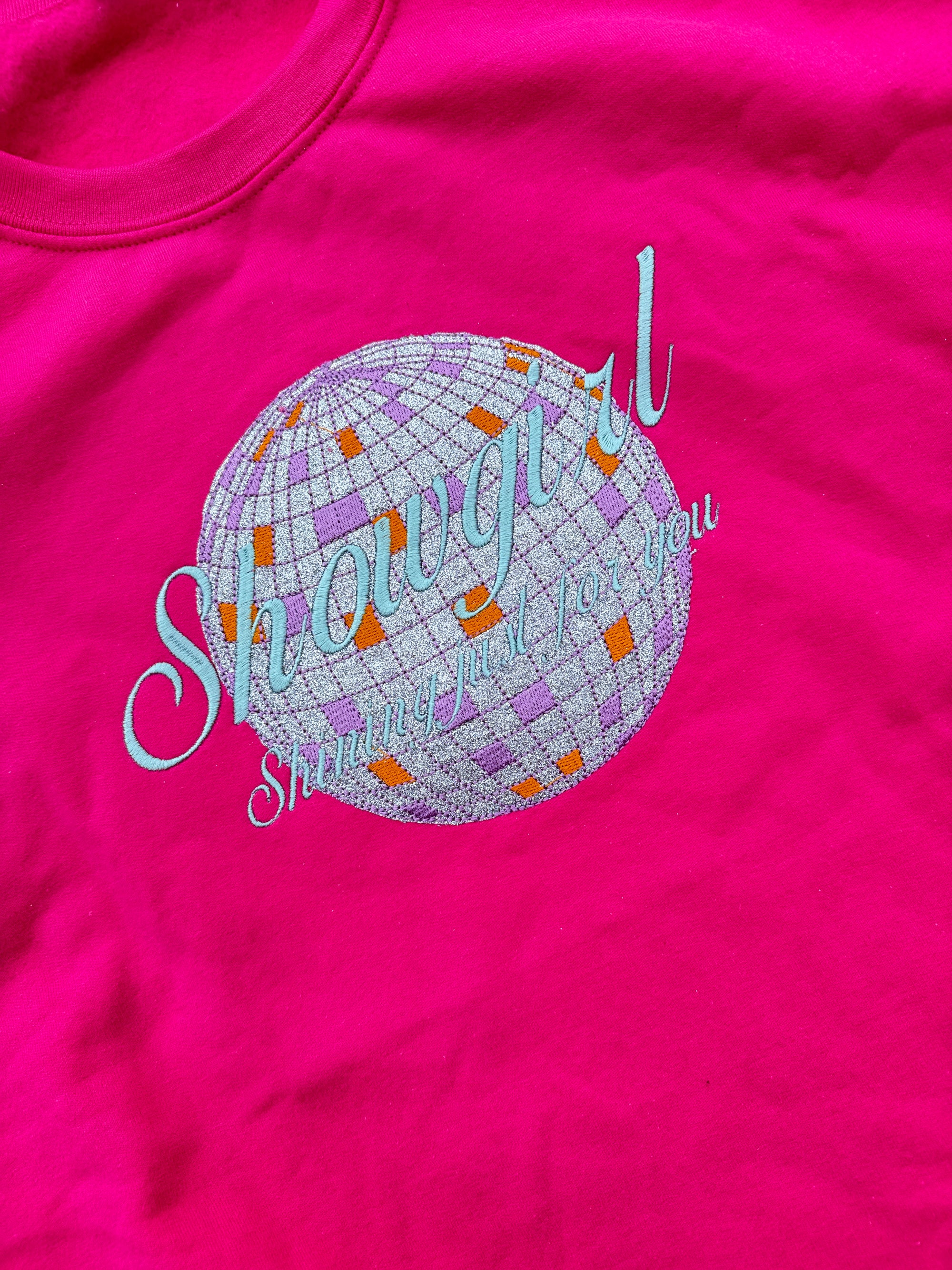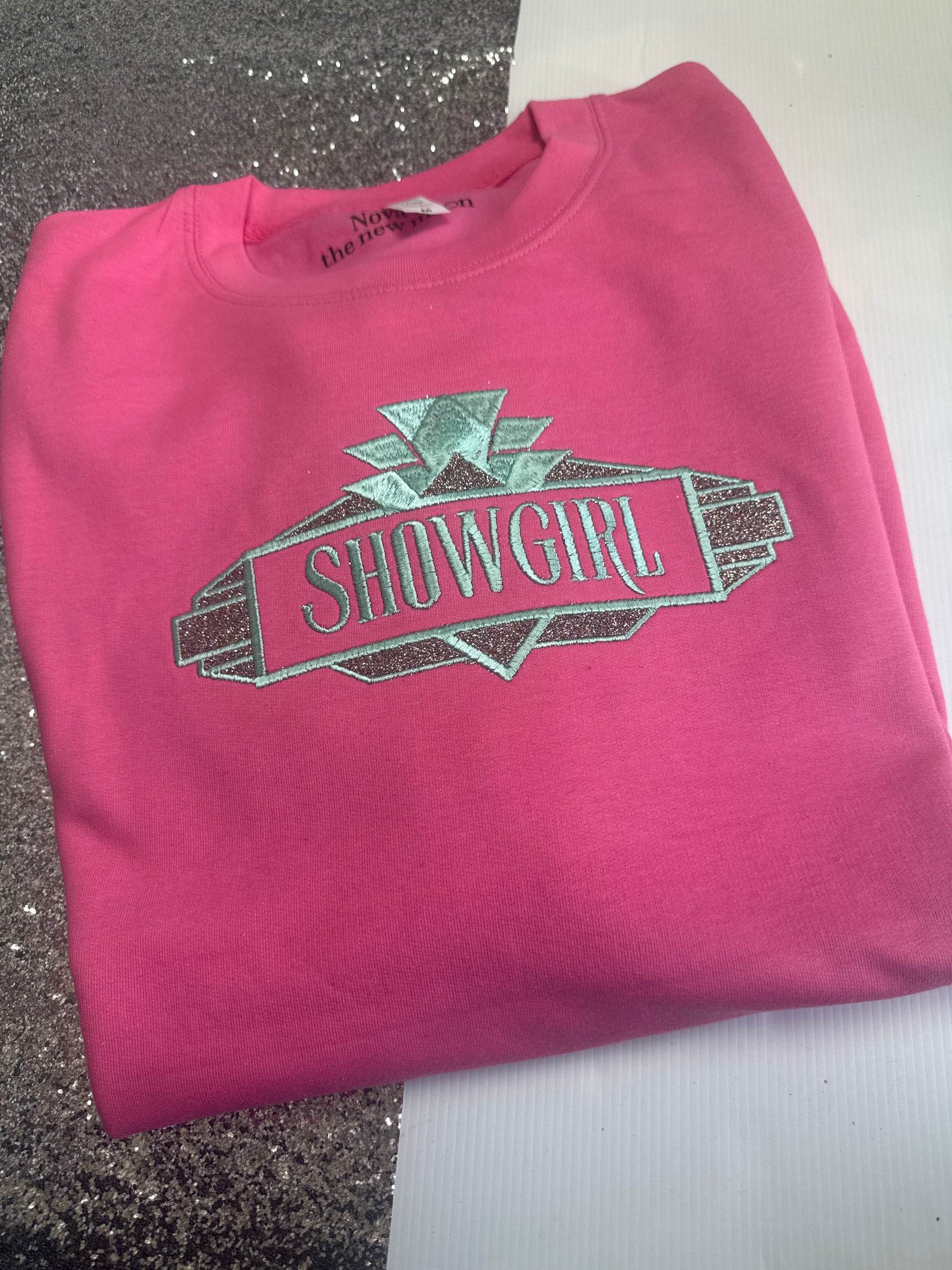 Medium (10/12) hot pink showgirl appliqué glitter sweater