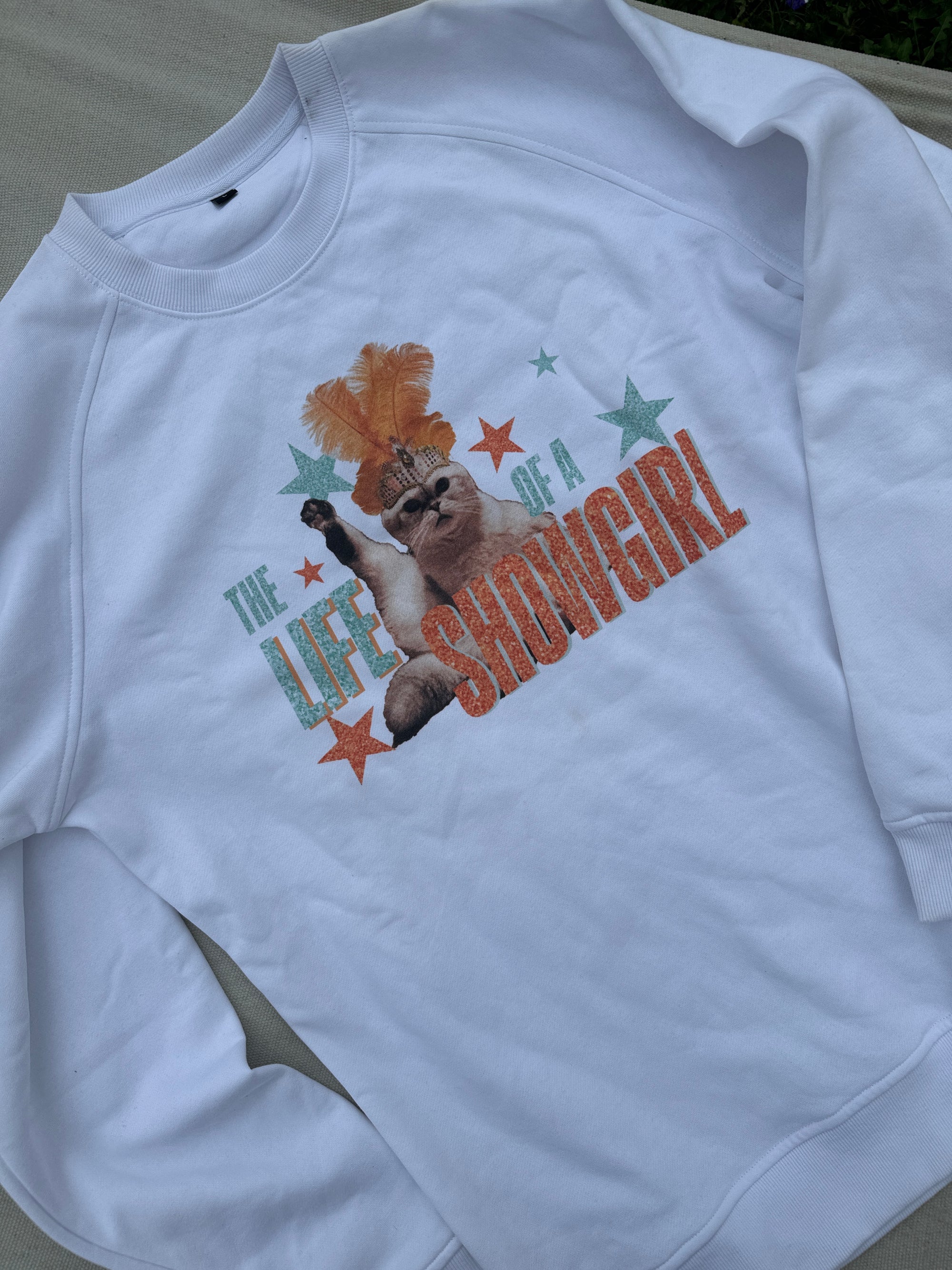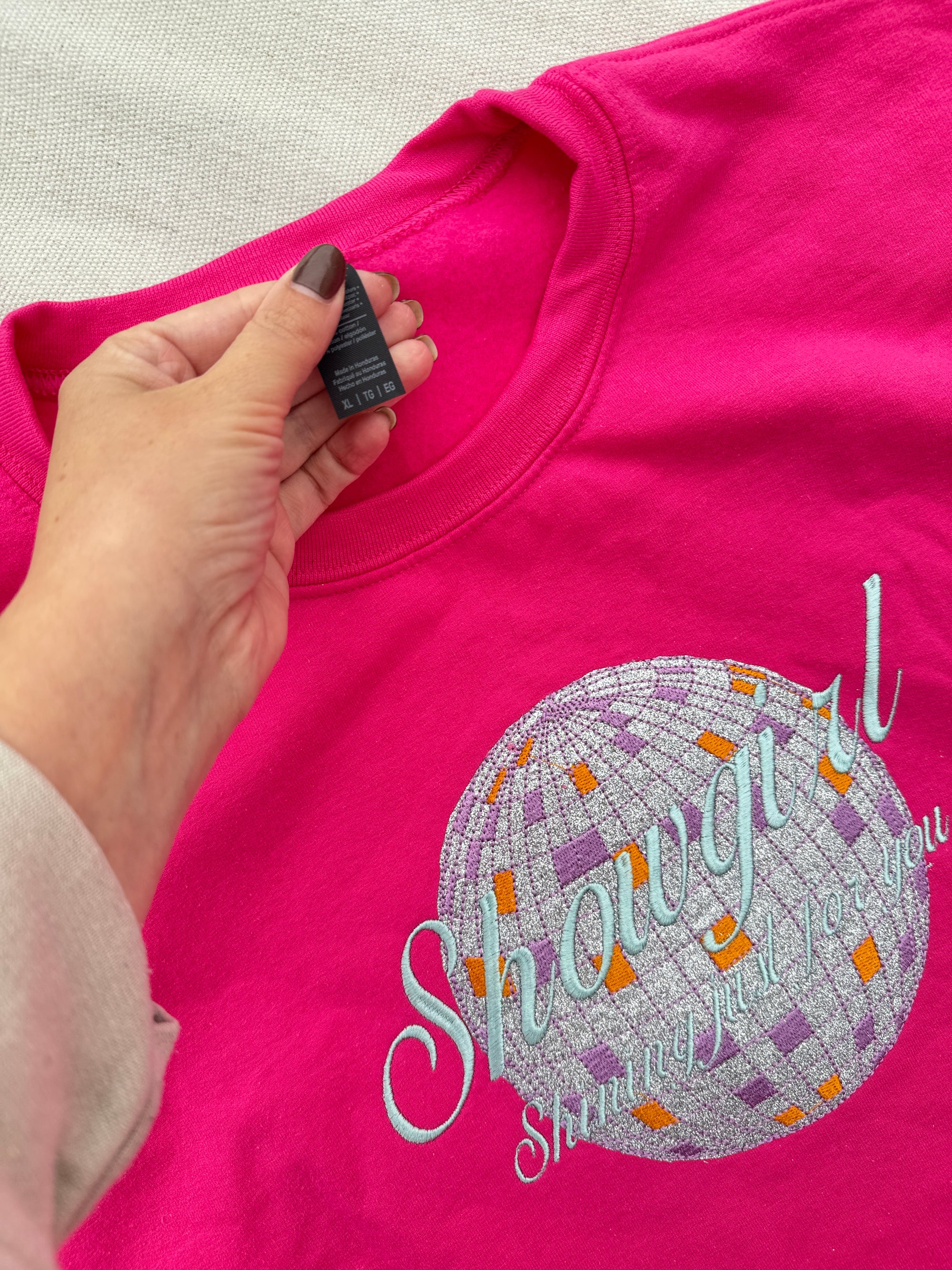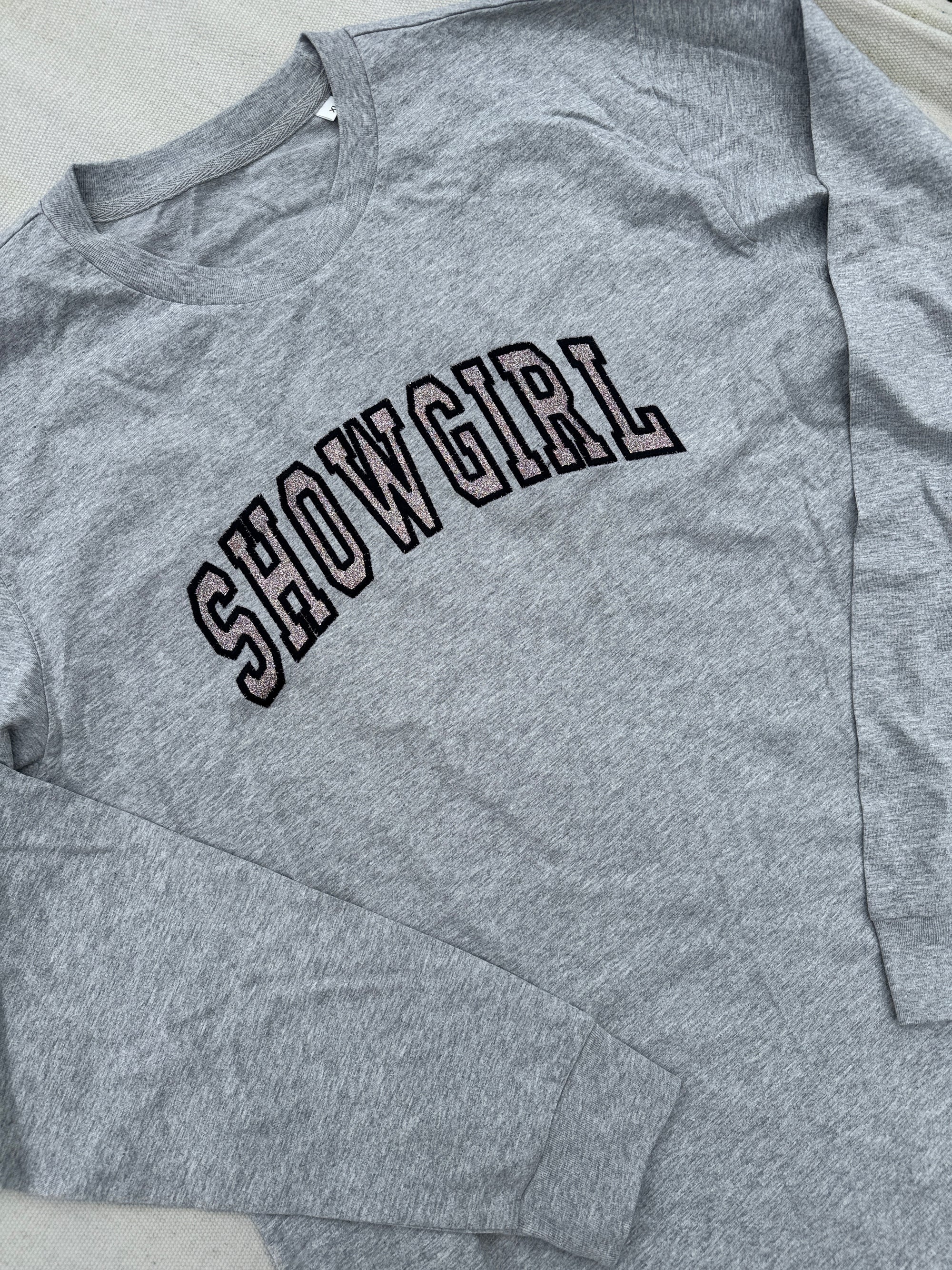 Medium (10/12) hot pink showgirl appliqué glitter sweater