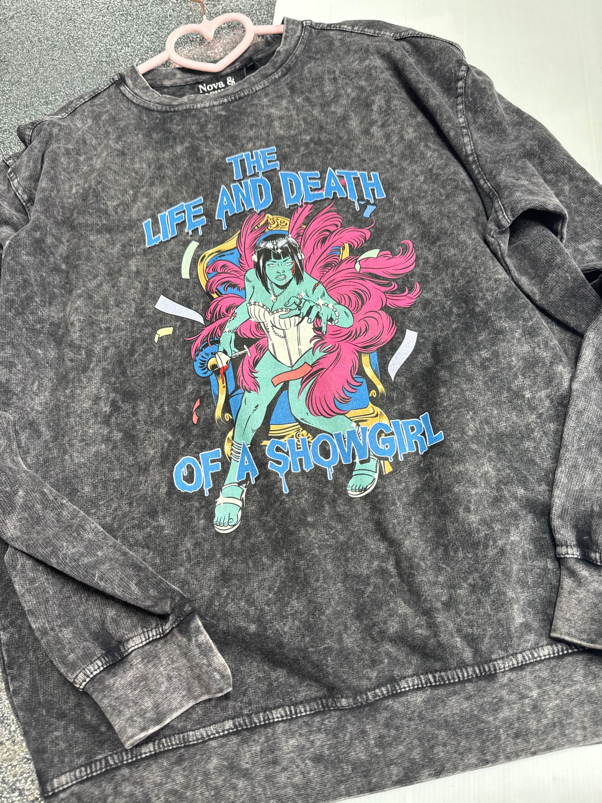 Médium (12/14) acide wash showgirl sweater
