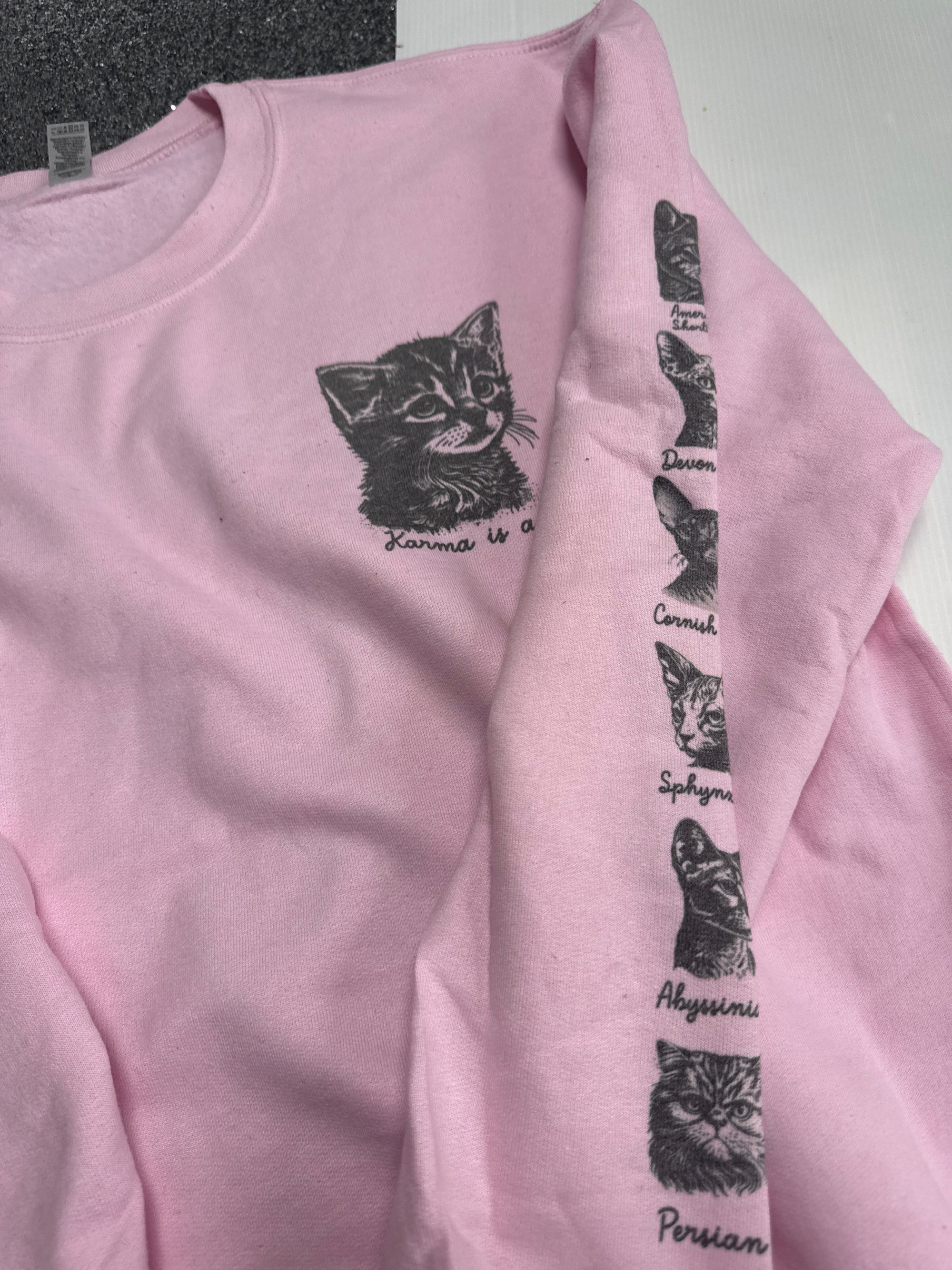 Médium 10/12 cat breeds pink sweater