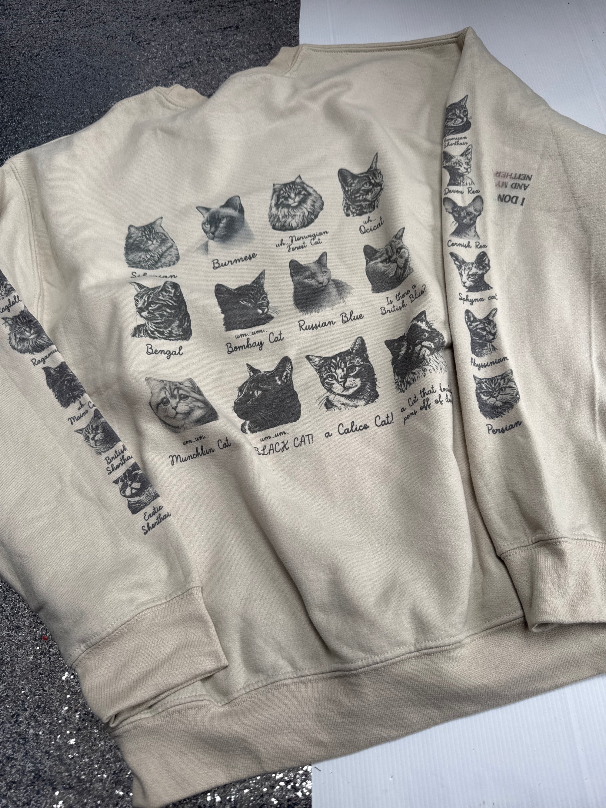 XL yes whale/ cat breeds mash up sand sweater