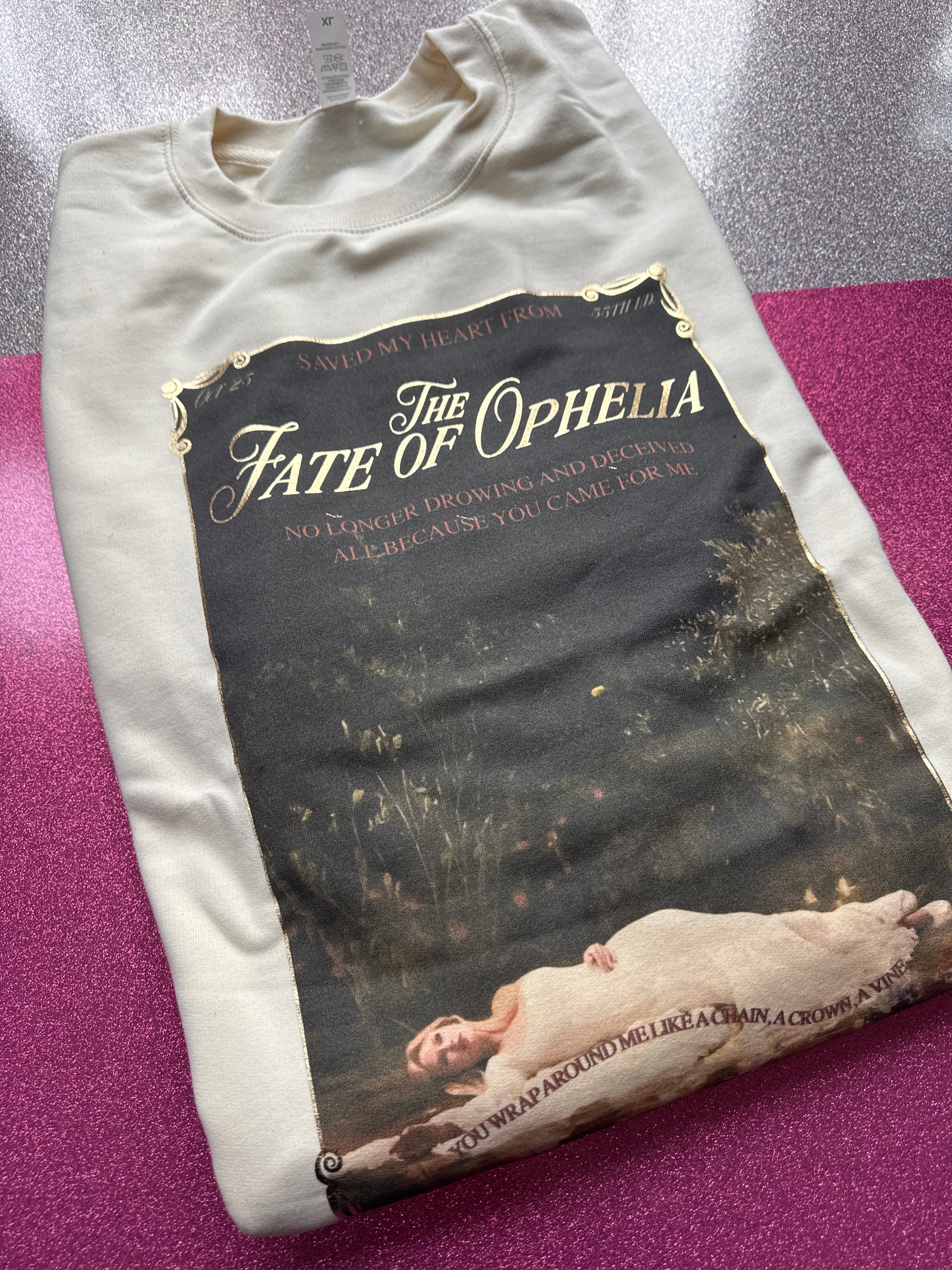 XL Misfit- fate of Ophelia vanilla sweater (spelling mistake on drowning)